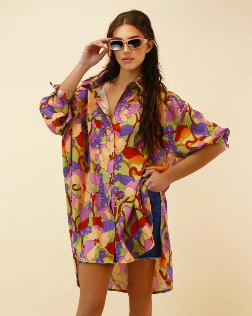 Questo capo è una vera meraviglia, molto amato sia per la vestibilità comoda, che dona comfort che per la sua stupenda fantasia multicolore con meravigliosi colori accesi, che richiamano l’estate. Questo capo è un classico, che non va mai fuori moda. Stile molto fine e casual con maniche morbide. Indossato si posa morbidamente sul corpo della donna che l’utilizza. Puoi risaltarne la bellezza arricchendola con accessori e gioielli. Adatto per uscite giornaliere, pomeridiane e serali o eventi speciali, lavoro, feste; insomma un capo così ti salverà dalle giornate indecise. Il tessuto è al 95% poliestere e 5% elastico. Si consiglia lavaggio a mano e in acqua fredda.