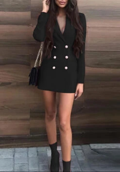 Vestito Donna Blazer Scollo V Bottoni Manica Lunga Casual Elegante Feste Eventi Party