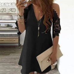 Vestito Donna Bretelle Morbido Scollo V Merletto Elegante Casual
