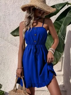 Vestito Donna Morbido Colletto Bottoni Manica Sbuffo Cintura