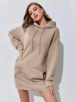 Vestito Donna Felpa Cappuccio Tasca Coulisse Comodo Caldo Casual