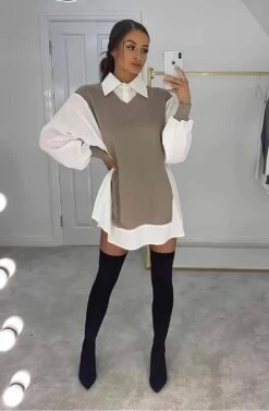 Linda Vestito Donna Camicione Colletto Fantasia Bicolore Bottoni Morbido Casual Elegante
