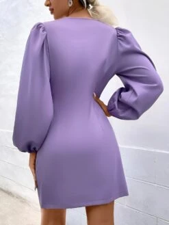 Vestito Donna Campana Girocollo Mezza Manica Sbuffo Monocolore Drappeggiato Casual Elegante