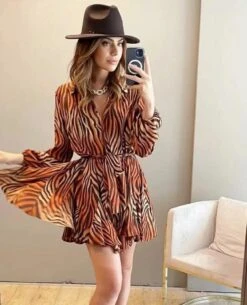 Vestito Donna Scollo V Gonna Campana Bottoni Fantasia Pitonato