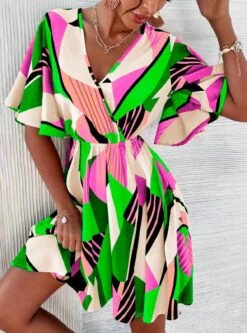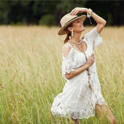 Vestito Donna Scollo V Mezza Manica Gonna Morbida Pizzo Sangallo