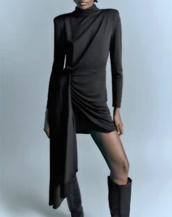 Vestito Donna Tubino Aderente Scollo Cuore Spalla Sbuffo Tulle Rush Sensuale Elegante