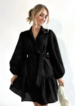 Vestito Donna Morbido Colletto Bottoni Manica Sbuffo Cintura