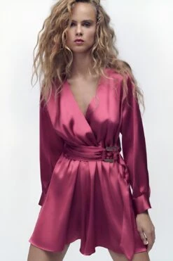 Vestito Donna Morbido Scollo V Cintura Fibbia Casual Elegante
