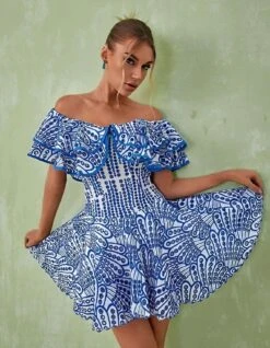 Vestito Donna Campana Bretella Scollo Cuore Elastico Volant Fantasia Floreale Spalle Scoperte
