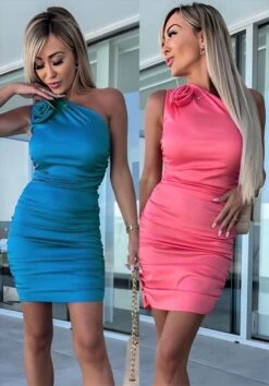 Vestito Donna Tubino Scollo V Profondo Bretella Monocolore Fibbia Elegante Sensuale