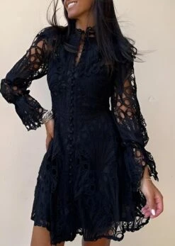 Vestito Donna Scollo Cuore Merletto Manica Sbuffo Fiocco Traforato Elegante Sensuale