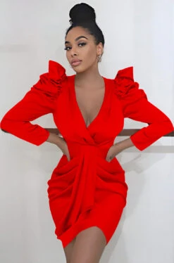 Linda Vestito Donna Tubino Scollo V Fantasia Fiori Volant Elegante Aderente Sensuale