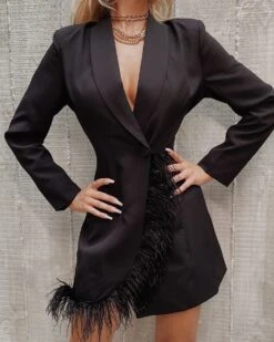 Vestito Donna Giacca Bottoni Scollo V Profondo Colletto Manica Lunga Elegante Sensuale