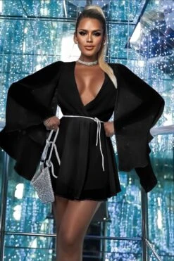 Vestito Donna Morbido Scollo V Manica Sbuffo Volant Portafoglio Cintura Bicolore Casual Elegante