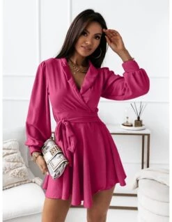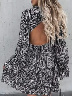 Vestito Donna Scollo V Gonna Campana Bottoni Fantasia Pitonato