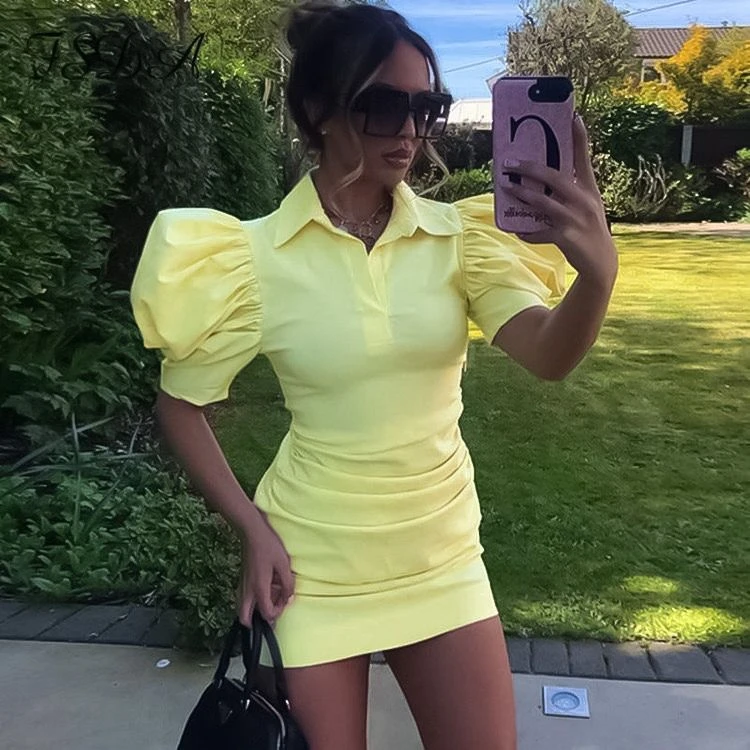 Questo sexy ed elegante vestito, accentua perfettamente le curve della donna rendendola più sensuale e con stile, due caratteristiche che ogni donna ricerca in un capo. Le sue particolarità sono: il colletto, le maniche a palloncino, la gonna con pieghe e la vestibilità aderente. Puoi arricchirlo con vari accessori semplici: borse, giacche, tacchi alti, ma perfetto anche con sandali. Ottimo anche per cocktail party, discoteca, cerimonie, ecc. Il tessuto è al 75% poliestere e al 25% nylon. Si consiglia lavaggio a mano e in acqua fredda.