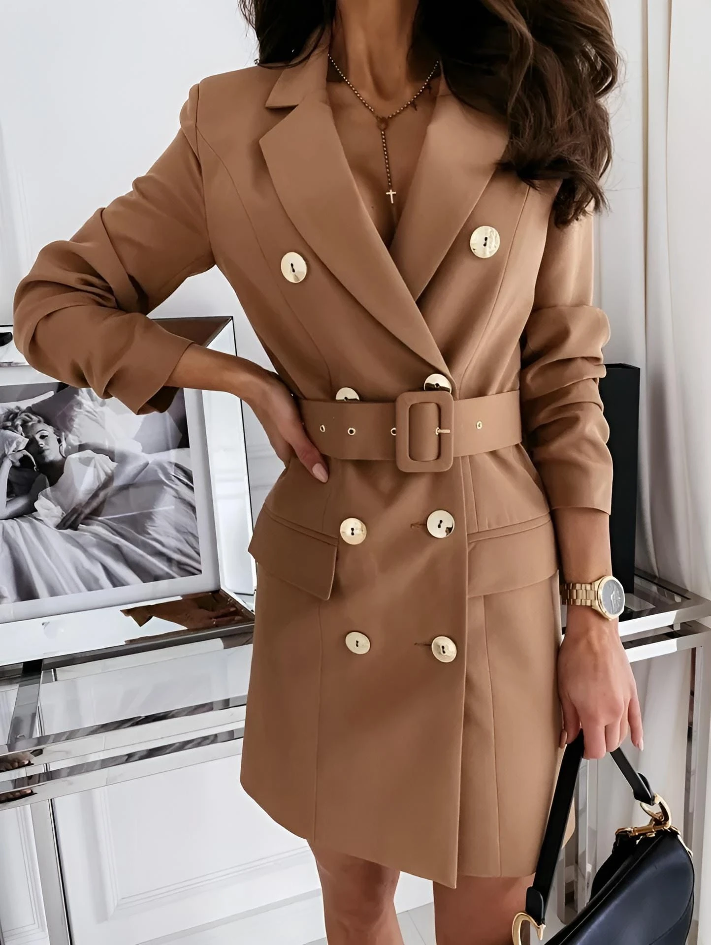 Vestito Donna Blazer Doppio Petto Scollo V Bottoni Cintura Casual Elegante Sensuale