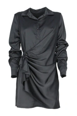 Vestito Donna Tubino Scollo V Manica Sbuffo Velato Bottoni Drappeggiato Elegante Sensuale