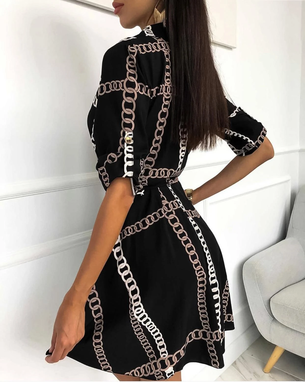 Questo vestito, è un capo davvero unico nel suo genere. Indossato si posa morbidamente sul corpo della donna che l’utilizza, regalandole charme e sensualità, due caratteristiche che ogni donna ricerca in un capo. La sua particolarità è la fantasia con catene. Può essere adatto per feste, party, cocktail party, branch e cerimonie. Il tessuto è al 100% poliestere. Si consiglia lavaggio in acqua fredda.
