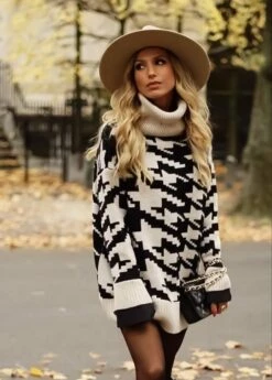 Linda Vestito Donna Maxi Pull Collo Alto Multicolore Morbido Caldo Casual Sensuale
