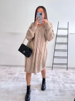 Vestito Donna Morbido Maxi Pull Scollo V Trama Intrecciata Casual Comodo