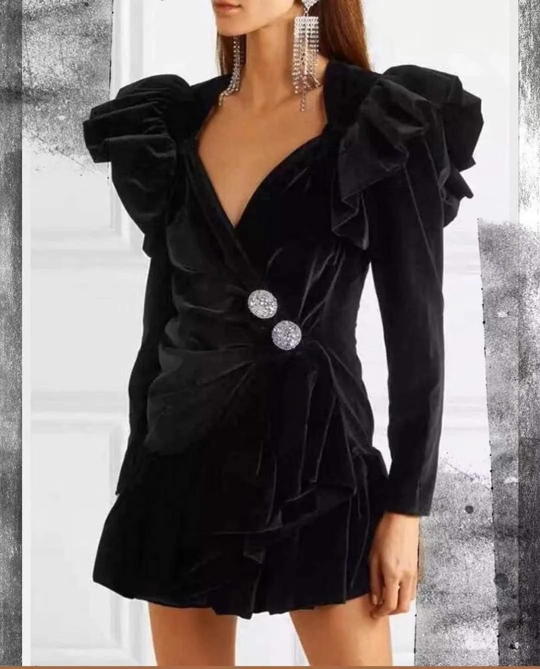 Vestito di ciniglia con bottoni, che scendono sul fianco in modo trasversale, è un capo molto particolare nel suo genere. Le rush sulle spalle, i bottoni è il tessuto stesso rendono questo abito molto elegante, che può essere indossato per serate molto particolari, come: feste, party, cocktail party e cerimonie. Il tessuto è al 95% Polyester e al 5% elastan. Si consiglia lavaggio in acqua fredda