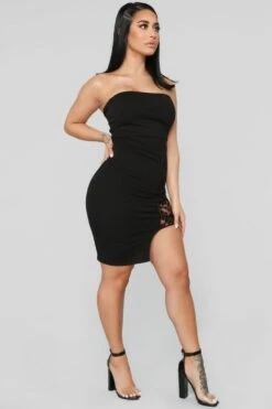 Vestito Donna Scollo Fascia Asimmetrico Macramè Aderente Elegante