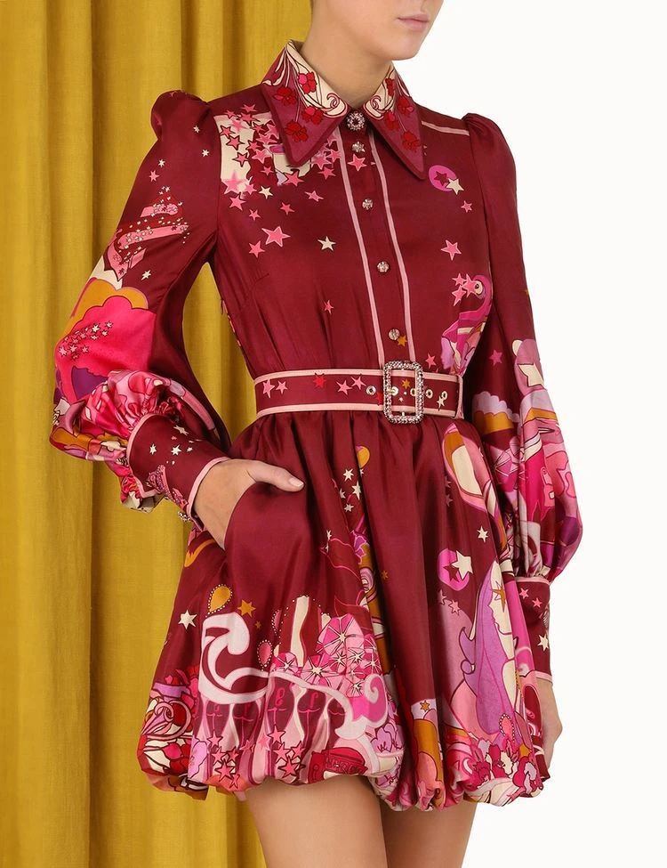 Questo vestito, è un capo unico ed inimitabile nel suo genere. Indossato si posa morbidamente sul corpo della donna che l’utilizza, regalandole charme ed eleganza, due caratteristiche che ogni donna ricerca in un capo. Le sue caratteristiche sono: il fondo rosso, la fantasia a colori, i bottoni, la cintura e la manica a sbuffo. Possono essere accostati accessori come: pochette e decolté. Può essere adatto per feste, party, cocktail party, branch e cerimonie. Il tessuto è al 95% poliestere e al 5% elastico. Si consiglia lavaggio a mano e in acqua fredda.