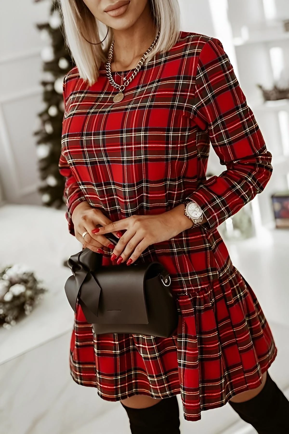 Vestito Donna Gonna Plissé Fantasia Scozzese Sensuale Elegante Casual