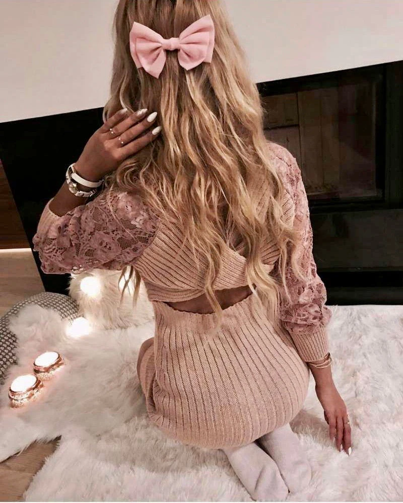 Vestito Donna Lana Scollo Schiena Merletto