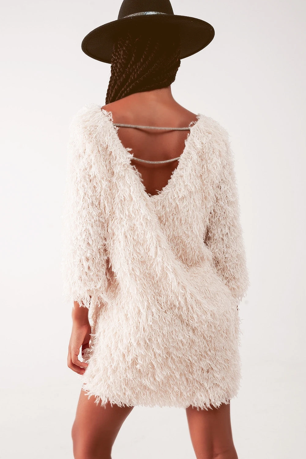Vestito Donna Manica Lunga Morbido Caldo Piume Schiena Scoperta Casual Elegante
