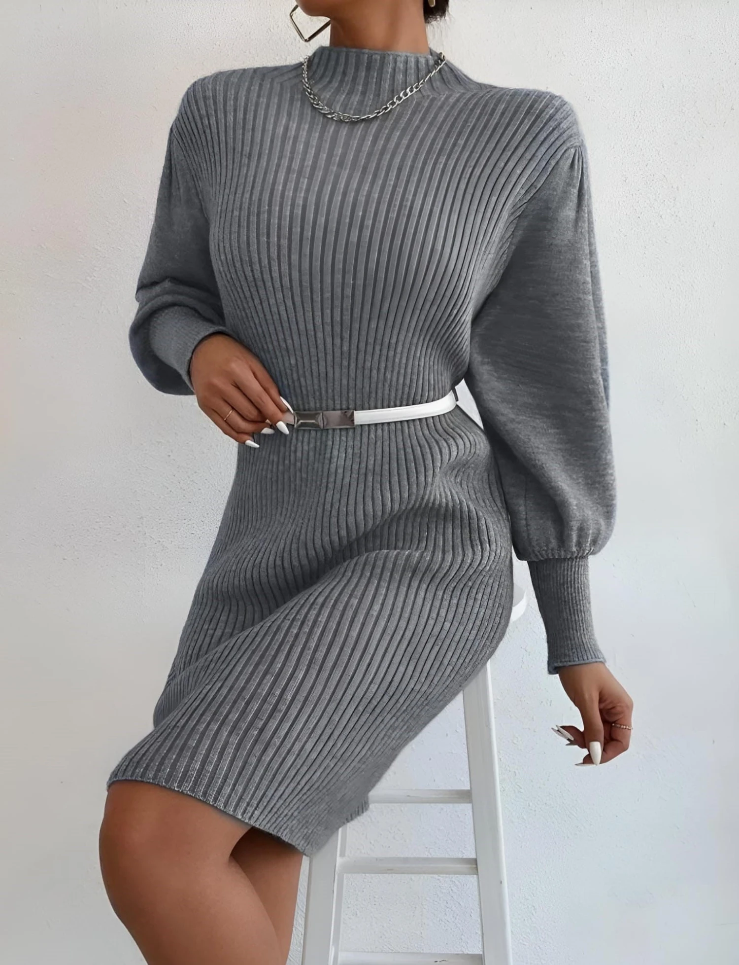 Vestito Donna Maxi Pull Collo Alto Manica Sbuffo Morbido Caldo Casual