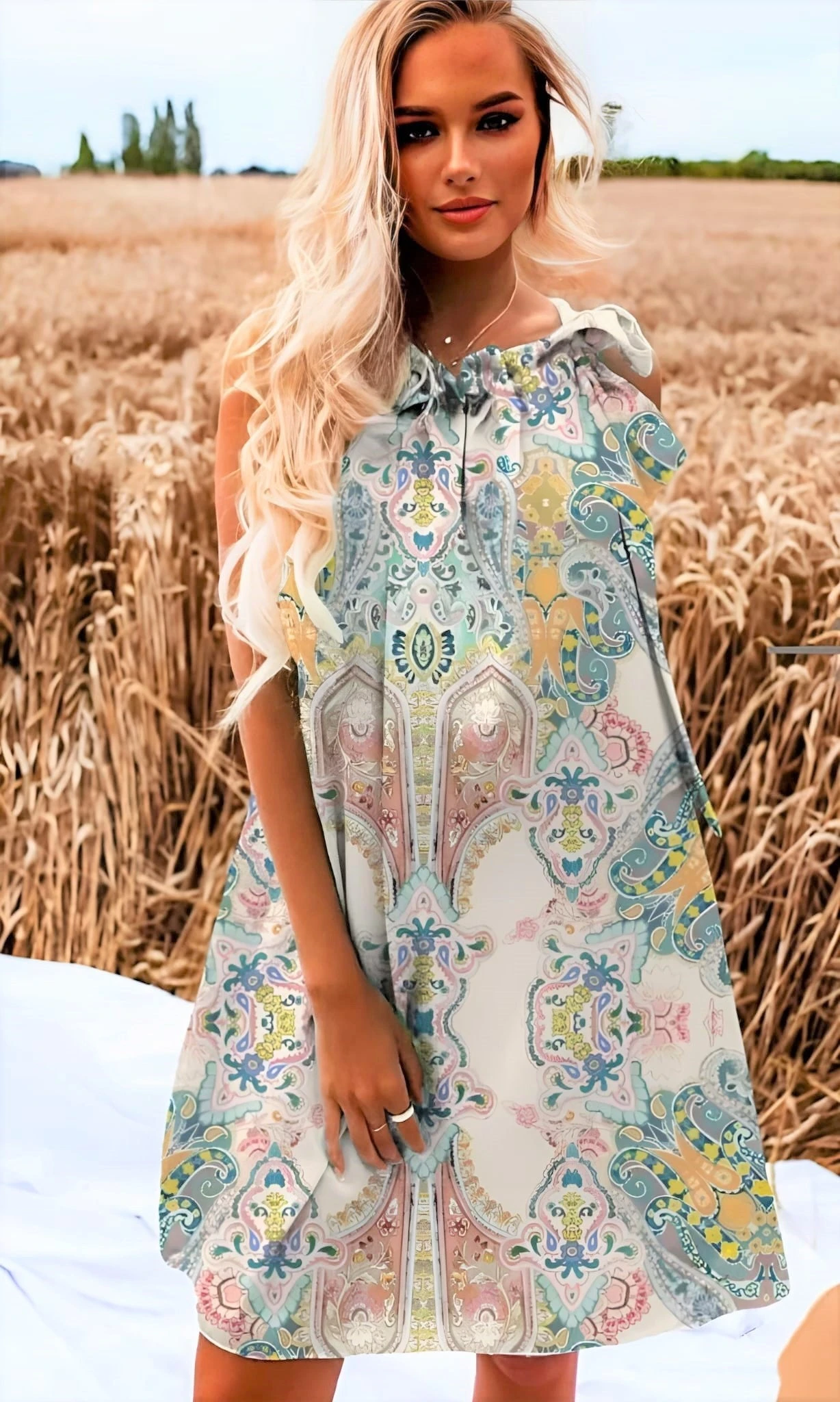 Un capo per farti sentire unica e donarti una luce diversa ha bisogno di avere dettagli ineguagliabili, proprio per questo ti consigliamo questo stupendo vestito con gonna a campana e fiocco sul collo. Indossato si posa leggiadramente sulle curve donando comodità e spensieratezza due elementi che si ricercano per essere sempre al top in qualsiasi occasione. Le sue caratteristiche sono: il fiocco sul collo, la fantasia e la morbidezza del tessuto. Potrai associare accessori come: pochette, sandali, borse di varie dimensioni, decolleté e sneakers. Il tessuto è al 95% poliestere e al 5% elastico. Si consiglia lavaggio a mano e in acqua fredda.