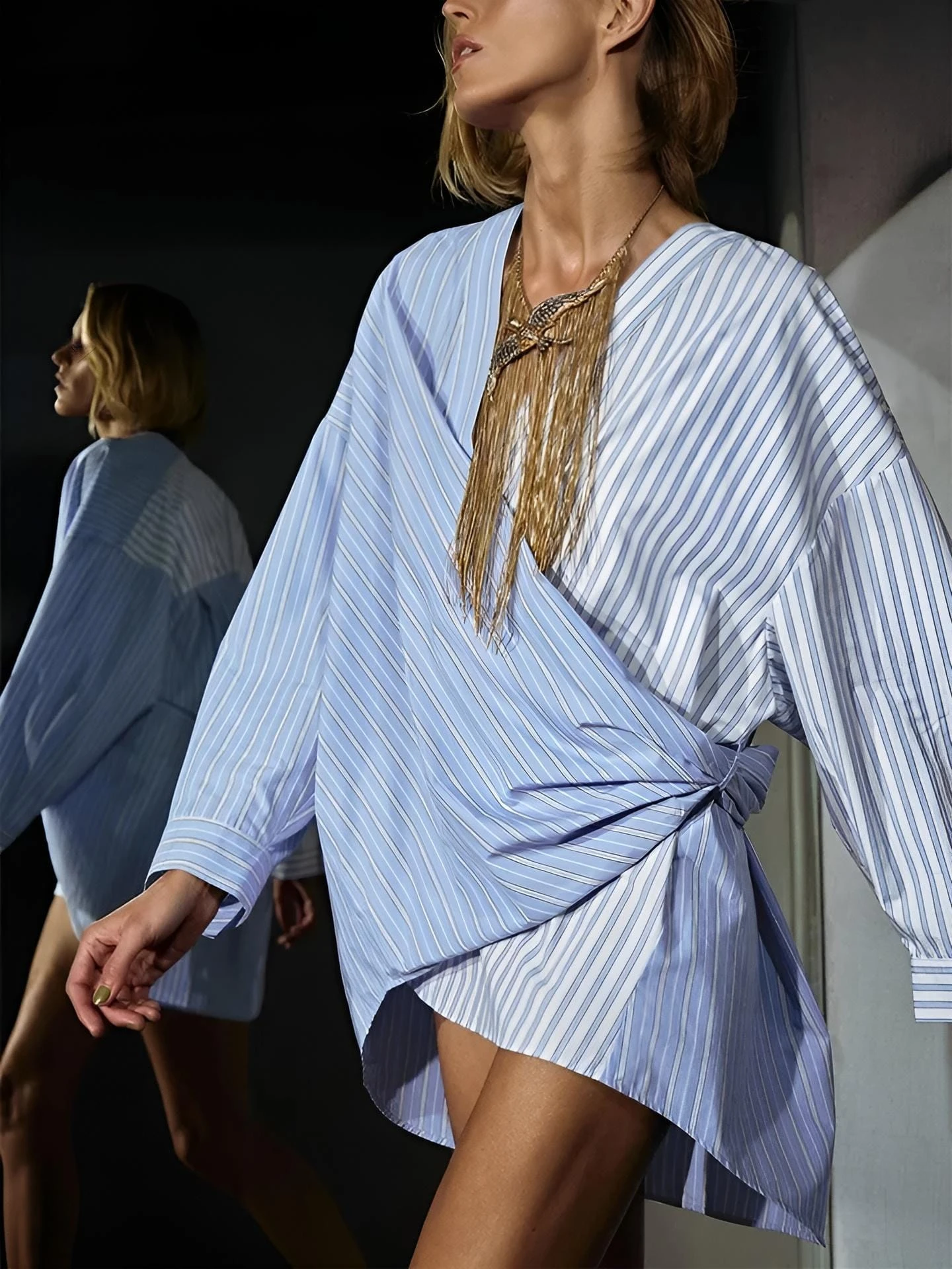 Questo vestito con incrocio, è un capo davvero particolare. Indossato si posa morbidamente sul corpo della donna che l’utilizza, regalandole sensualità ed eleganza, due caratteristiche che rendono una donna sicura di sé in qualsiasi contesto essa si trovi. La sua particolarità e il tessuto morbido, il fiocco laterale per renderlo ancora più particolare, la fantasia a righe e lo scollo a V. Può essere adatto per feste, party, cocktail party, brunch e per giornate casual, ciò dipende dagli accessori che gli vengono accostati. Il tessuto è al 95% poliestere e al 5% elastico. Si consiglia lavaggio in acqua fredda e a mano.