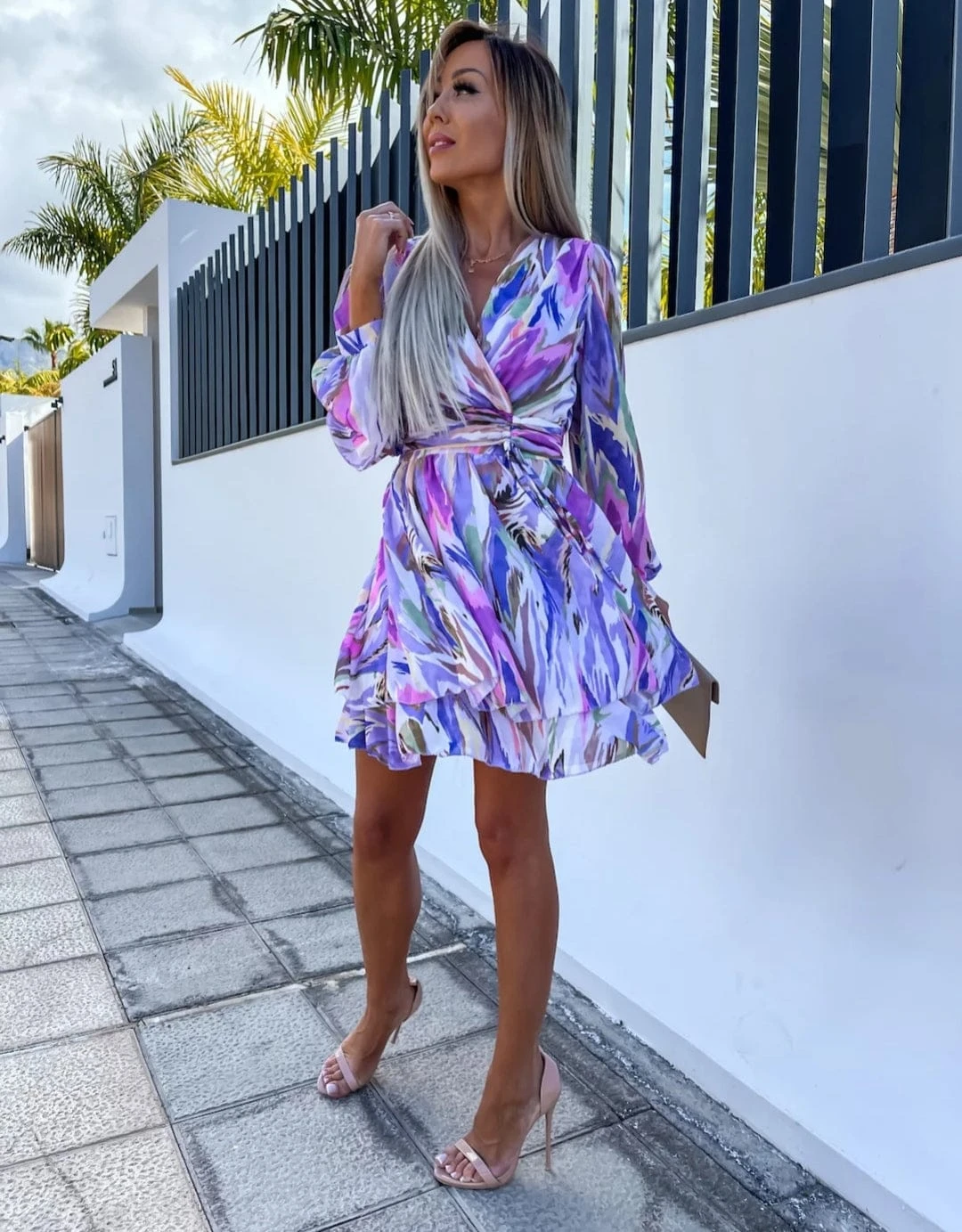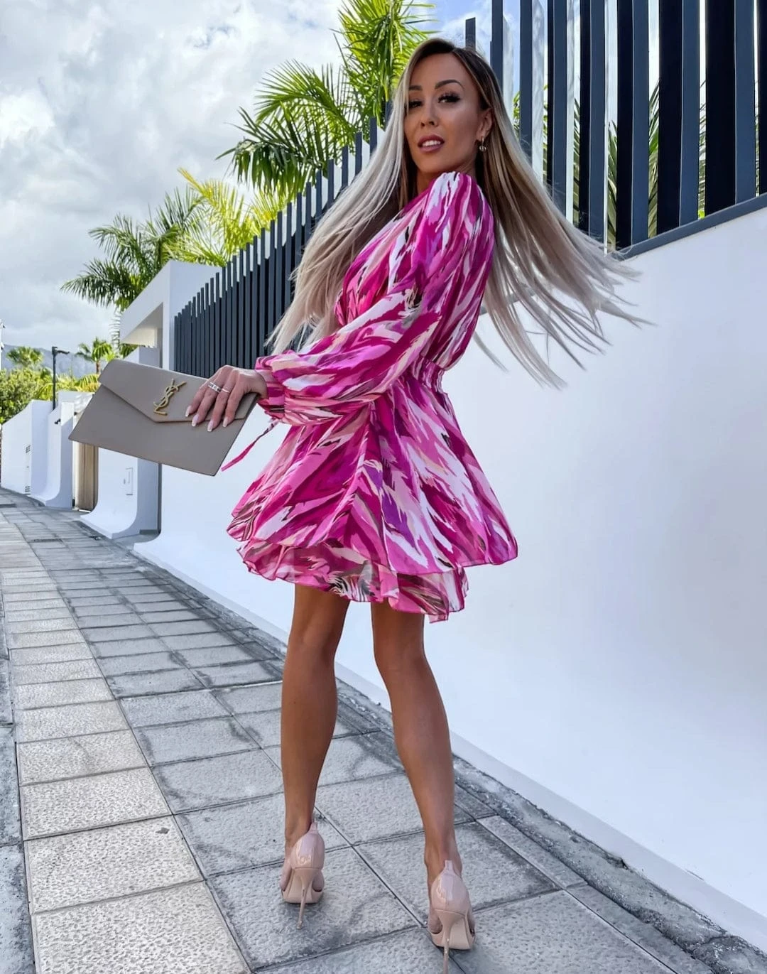 Questo vestito, è un capo ineguagliabile nelle sue caratteristiche. Indossato si posa leggermente sulle curve della donna che l’utilizza, regalandole sensualità e charme, caratteristiche che ogni donna ricerca per fronteggiare le giornate primaverili. Le sue peculiarità sono: le maniche a sbuffo, i volant, lo scollo a V, la fantasia e la gonna a campana. Possono essere affiancati accessori come: decolleté, sandali, borse di varie dimensioni e pochette. Può essere adatto per giornate più easy, o per serate più impegnative. Il tessuto è al 95% poliestere e al 5% elastico. Si consiglia lavaggio a mano e in acqua fredda.