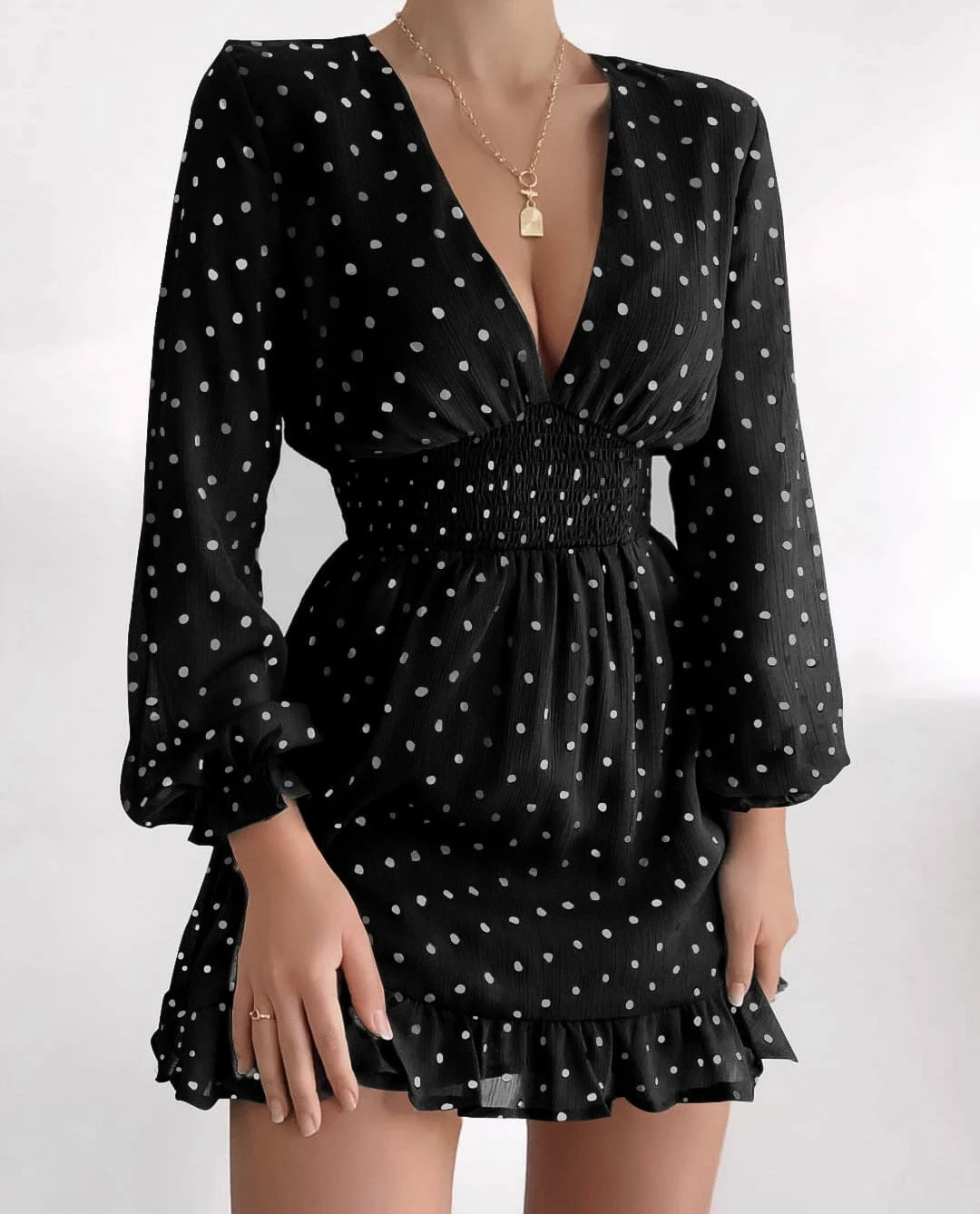 Vestito morbido a pois scollo a V, è un capo davvero unico nel suo genere. Indossato si posa morbidamente sul corpo della donna che l’utilizza, regalandole sensualità ed eleganza, due caratteristiche che rendono la donna irresistibile agli occhi dell’uomo che le passa accanto. La sua particolarità è lo scollo a V e la fantasia a pois che rendono quest’abito unico nel suo genere. Può essere adatto per feste, party, cocktail party, branch e cerimonie. Il tessuto è al 97% viscosa 3% elastan. Si consiglia lavaggio in acqua fredda.