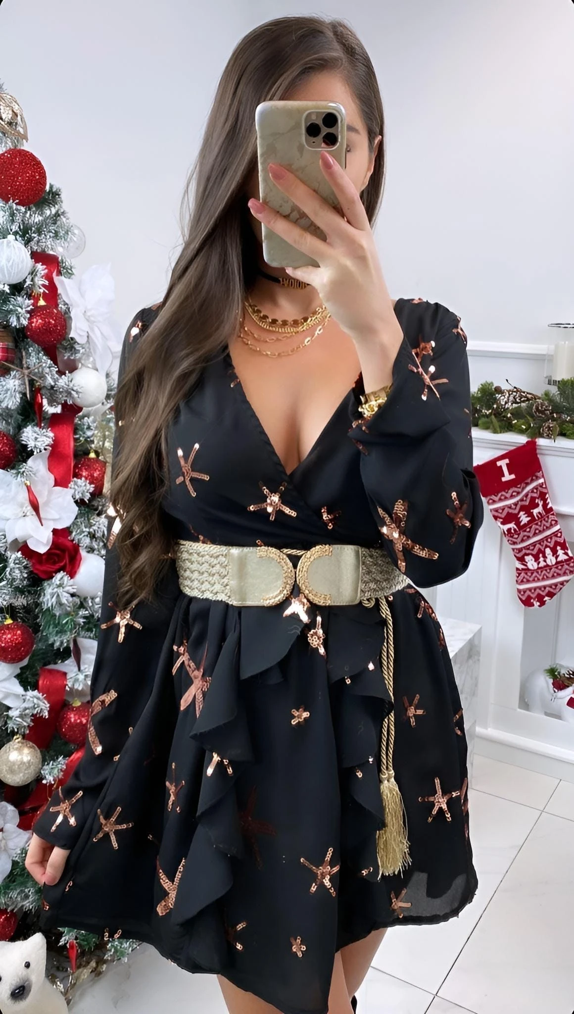Questo vestito, è un capo inimitabile nel suo genere. Indossato dona alla donna che l’utilizza, charme, sensualità e sex-appeal, tutte caratteristiche che rendono una donna sicura di sé in qualsiasi contesto essa si trovi. Le sue particolarità sono: lo scollo a V, le maniche a sbuffo, la fantasia con stelle marine, le rush e la gonna svasata. Possono essere affiancati accessori come: gioielli, decolleté e pochette. Può essere adatto per feste, party, cocktail party, brunch e cerimonie. Il tessuto è al 95% poliestere e al 5% elastico. Si consiglia lavaggio a mano e in acqua fredda.