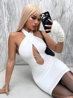 Vestito Donna Tubino Bretella Incrociata Gioiello Aderente Sexy