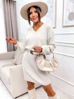 Vestito Donna Maxi Pull Scollo V Morbido Caldo Morbido Casual Elegante