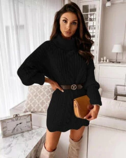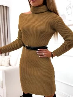 Vestito Donna Maxi Pull Cut Out Collo Alto Comodo Casual Elegante Caldo
