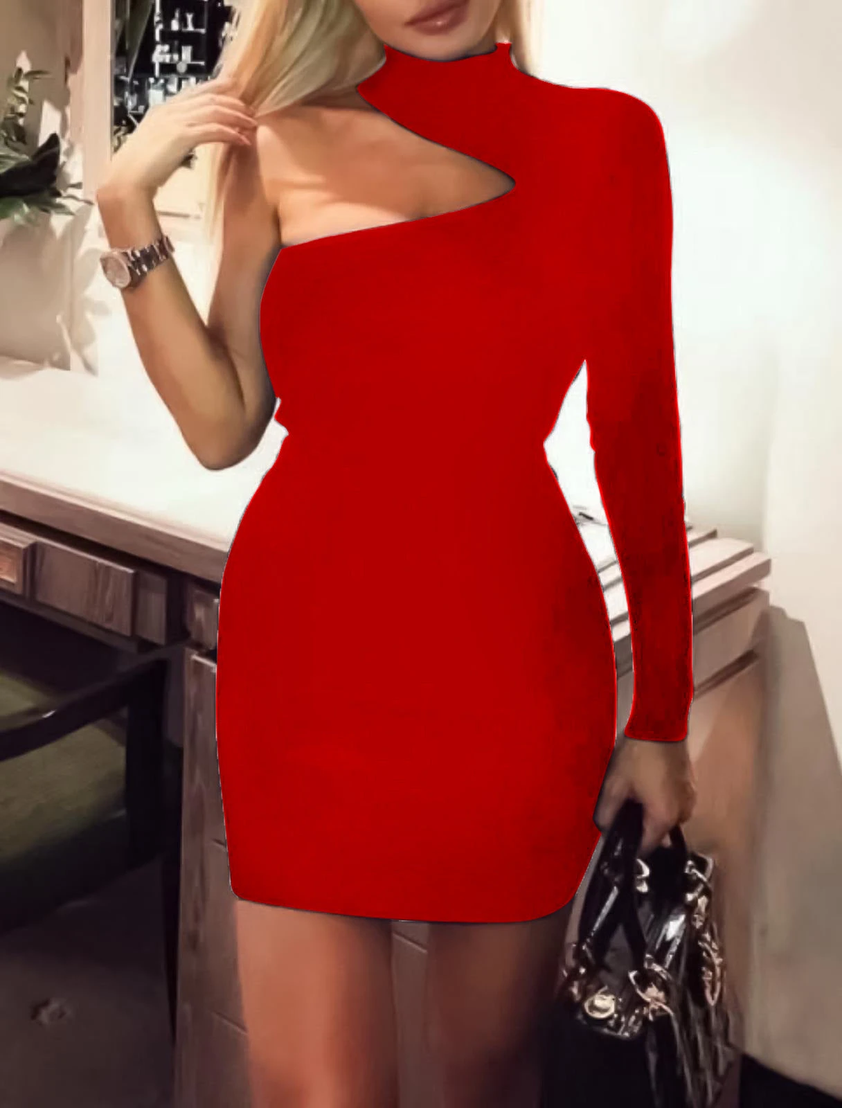 Vestito Donna Tubino Mono Spalla Aderente Sensuale