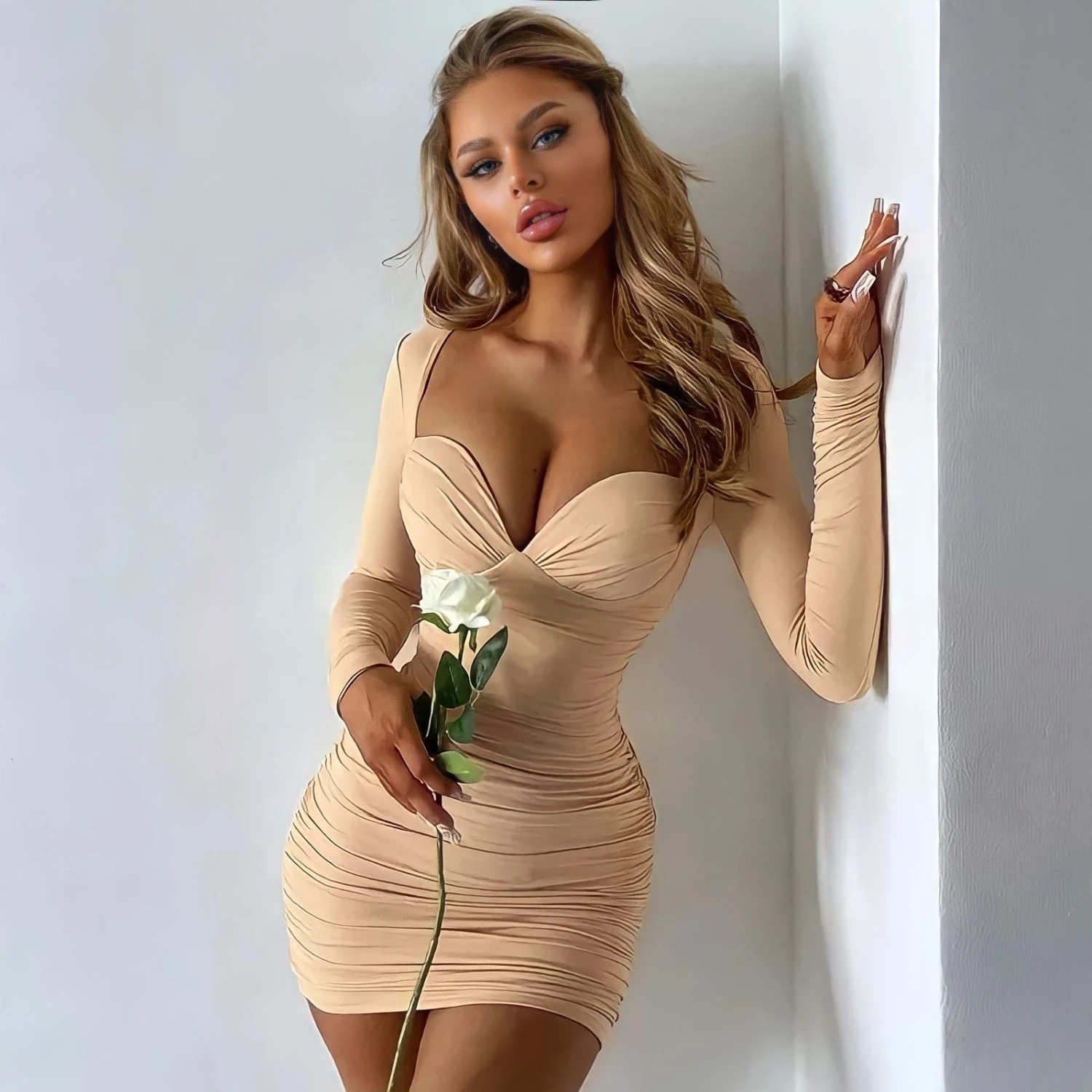 COD: BGVZD 7858154438869 Categoria: Vestiti a Tubino Tag: Drappeggiato, Manica lunga, Scollo a cuore, Vestito