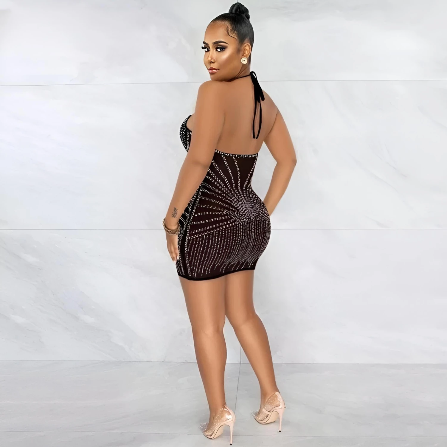 Per affrontare gli eventi in cui il dress-cood è essere ineguagliabile ed unica, ti proponiamo questo stupendo vestito a tubino con strass. Indossato aderisce in modo incisivo sulle curve, regalando aglio occhi di chi la guarda un certo sex-appeal. Le sue peculiarità sono: lo scollo a cuore, la bretella che si incrocia al collo, gli strass e l’aderenza. Possono essere affiancati accessori come: pochette, sandali e decolleté. >E’ adatto per: feste, cocktail party, cerimonie, serate in disco. Il tessuto è al 95% poliestere e al 5% elastico. Si consiglia lavaggio a mano e in acqua fredda.