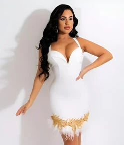 Vestito Donna Tubino Bandage Scollo Cuore Bretelle Piume Elegante Sensuale Aderente