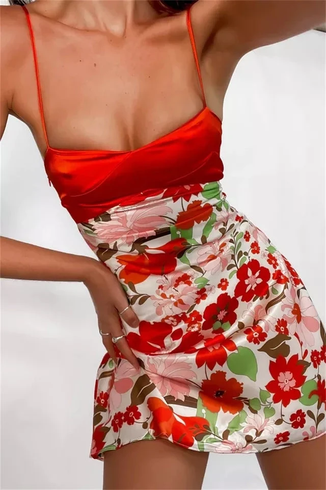 VICTOR Vestito Donna Scollo Cuore Bretelle Gonna Morbida Fantasia Fiori Sensuale Elegante